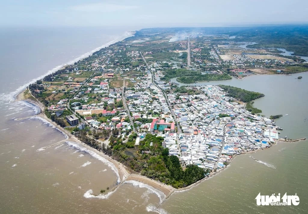 Tổng quan khu vực bờ biển Long Hòa – Cần Thạnh từ trên cao, nơi sẽ phát triển thành một đô thị lớn hơn 2.800ha.